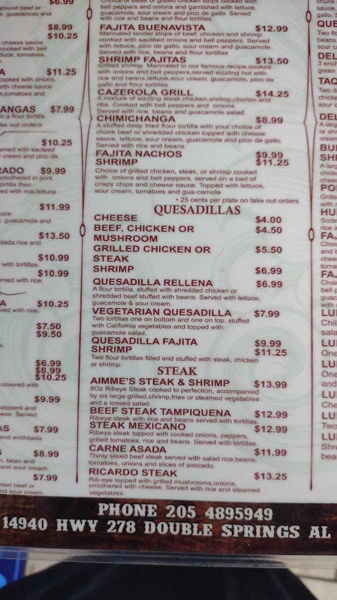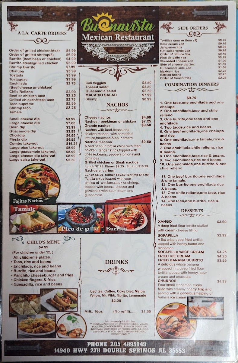 Welcome to Buena Vista, a hidden gem nestled in Double Springs, AL. This quaint restaurant offers a delightful escape into the vibrant world of Mexican cuisine. Diners rave about the warm, welcoming atmosphere and the exceptional service that enhances every meal.